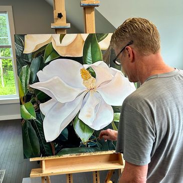 My art always has a thread of the natural environment that runs through it. My love for gardening and being in the outdoors inspired my landscapes and I find myself zooming in more and more to appreciate the beauty and complexities of capturing florals in oil on canvas.